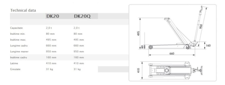 • DK20Q este echipat cu pedală de ridicare rapidă pentru urcarefacila pana la punctul de ridicare